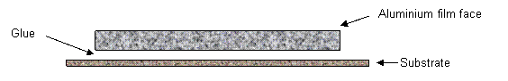The aluminium facing on our black non-flammable foams is there to provide protection from dust and fluid ingress and should always be installed with the aluminium face topside and the adhesive applied to the opposite side. (See diagram) Normally this special film faced acoustic foam would be glued to the ‘noisy’ side of an enclosure.